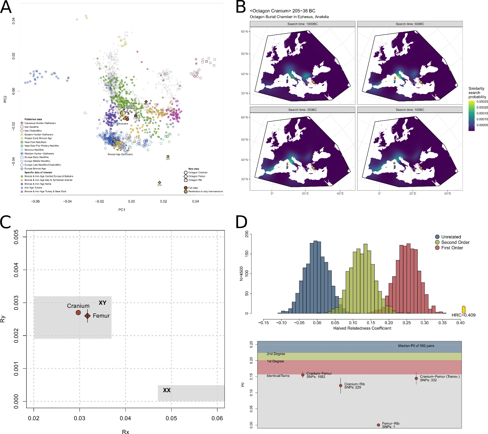 Аннотация: Шелковый путь, древний торговый путь, соединяющий Китай с Западом, способствовал обмену товарами, идеями и культурными практиками между различными цивилизациями. Согдийцы были видными торговцами вдоль Шелкового пути, известными своей ролью торговцев, ремесленников и артистов. Они мигрировали в Китай, образуя устойчивые сообщества, которые произвели несколько поколений потомков. Несмотря на их историческую важность, первичные письменные записи, подробно описывающие происхождение согдийцев и их взаимодействие с местным населением, ограничены. В этом исследовании мы получили данные по всему геному для двух древних людей из совместного захоронения (M1401) на кладбище Гуюань, датируемого династией Тан (618–907 гг. н. э.). Насколько нам известно, это первые древние геномные данные, полученные от согдийского населения. Наши результаты показывают, что у женской особи наблюдается местное происхождение, в то время как у мужской особи есть как местное происхождение, так и дополнительные генетические компоненты, связанные с Бактрийско-Маргианским археологическим комплексом (BMAC) в Центральной Азии. Это было введено в местный генофонд примерно 18 поколений назад. Объединив исторический, археологический и генетический анализы, мы пришли к выводу, что эти два человека, вероятно, были мужем и женой. Наши выводы свидетельствуют о том, что согдийцы, которые изначально путешествовали в Китай для торговли, осели, вступили в браки с местным населением и сыграли значительную роль в качестве посредников в торговле Шелкового пути. Это исследование подчеркивает важность Согдианы в конце первого тысячелетия до н. э. в укреплении связей между эллинистическим миром и династиями Цинь/Хань, подчеркивая ранние черты согдийской идентичности, которые предшествовали их более поздней известности как ключевых торговцев Шелкового пути.