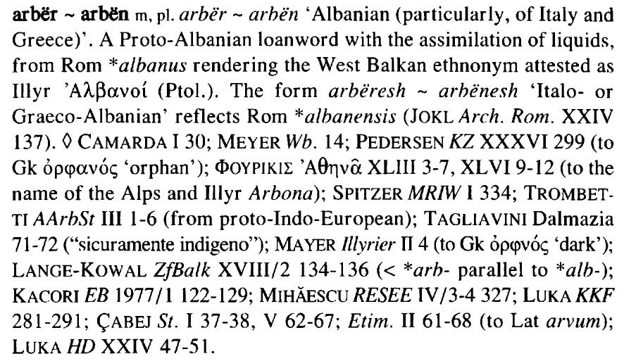 Албанцы себя называют так только с конца 17-го века, до этого они называли себя Arbëresh / Arbënesh:
